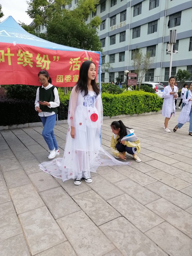 活动期间,同学们利用收集到的落叶制作出了许多匠心独具的作品,将自己对秋天的点滴赞美与热爱融入了一份份精致的作品中。用纹理清晰的多片树叶拼出的花加上树枝的点缀 颇有一种“秋风萧瑟天气凉,草木摇落叶为霜”的氛围;“秋风清,秋月明,落叶聚还散”,一个团结的宿舍用秋叶缝制出的衣裙别致清新,获得了很多人一致的好评;还有精致的帽子,细致的刺绣,图文并茂的画卷……份份作品都展示出了制作者的心意,都将自己对秋的赞美深深融入了其中。投票的同学络绎不绝,相互交谈着对每一份作品的意见。