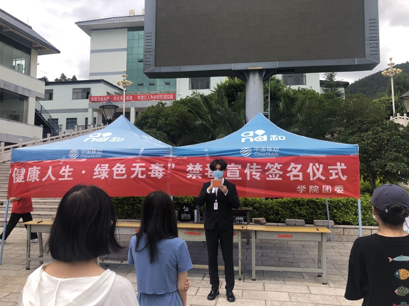 2020年是云南省开展第四轮禁毒人民战争的收官之年,正值新冠肺炎疫情期间这一个特殊的事情,学院团委结合学院疫情防控实际情况,于“6,26”国际禁毒日当天,组织学生代表在小广场前进行了“健康人生,绿色无毒”禁毒宣传签名活动。