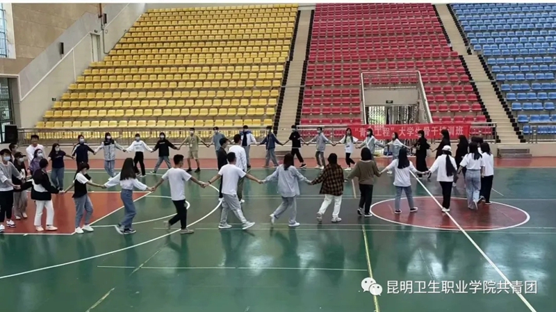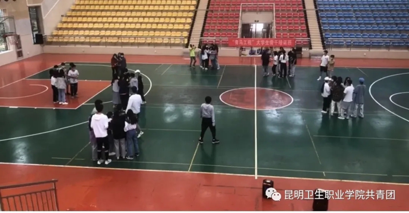 2020年7月19日上午,“青马工程” 大学生骨干培训班的学员在学院体育馆开展了以“携手并肩,共同前行”为主题的户外素质拓展之“团团”破冰行动。