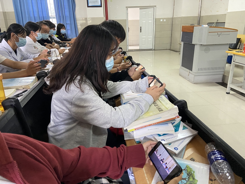 9月8日,在广泛宣传下,各个班级学生干部同学在手机上学习大会内容,并且记录要点,并且通过主题班会的形式,传达给本班同学,