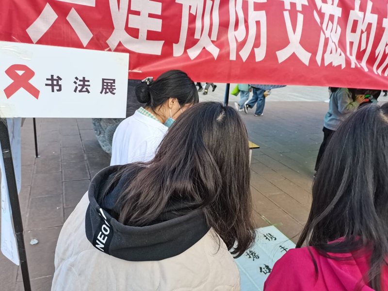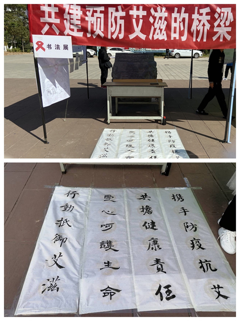 2020年12月1日由团委志愿者工作部和红十字会日在XK星空白求恩雕像旁举行“携手防疫抗艾,共担健康责任”系列活动之三书法展,同学们来观看书法,既得到了艺术的熏陶,也增长了对艾滋病的了解,得到了一致好评。随着文墨轩同学写的“行动抵御艾滋,爱心呵护生命。共担健康责任,携手防御抗艾。”几行毛笔字的出现,同学们无一不被这刚劲有力的毛笔字吸引,仿佛无形之中告诉他们预防艾滋病的重要性。