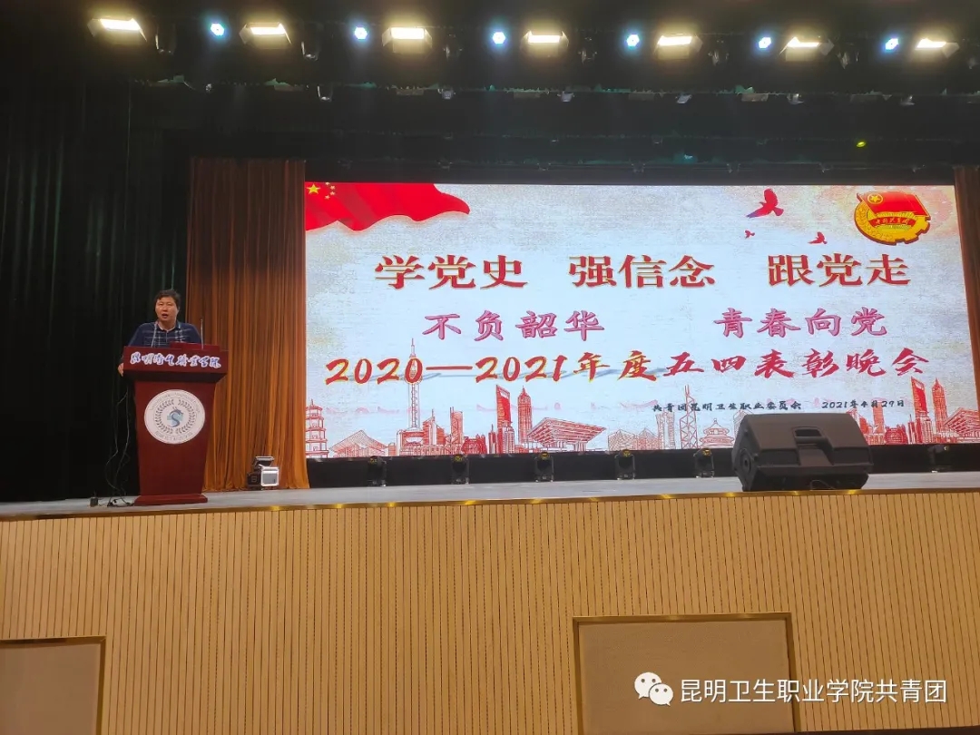 为深入贯彻落实习近平总书记在党史学习教育动员大会上的讲话精神,进一步推进XK星空党史学习教育走深走实,激励引导全校各级团组织和广大团员青年感悟初心使命、传承红色基因,厚植爱党、爱国、爱社会主义情怀,4月29日18:00,学院团委在明德会堂隆重举行“学党史、强信念、跟党走”五四文艺晚会暨表彰大会。学院党委副书记张晓刚同志,党委委员、组织部部长、副院长周平同志、各处室负责人、二级学院党支部班子成员和师生代表共计1000余人观看晚会。