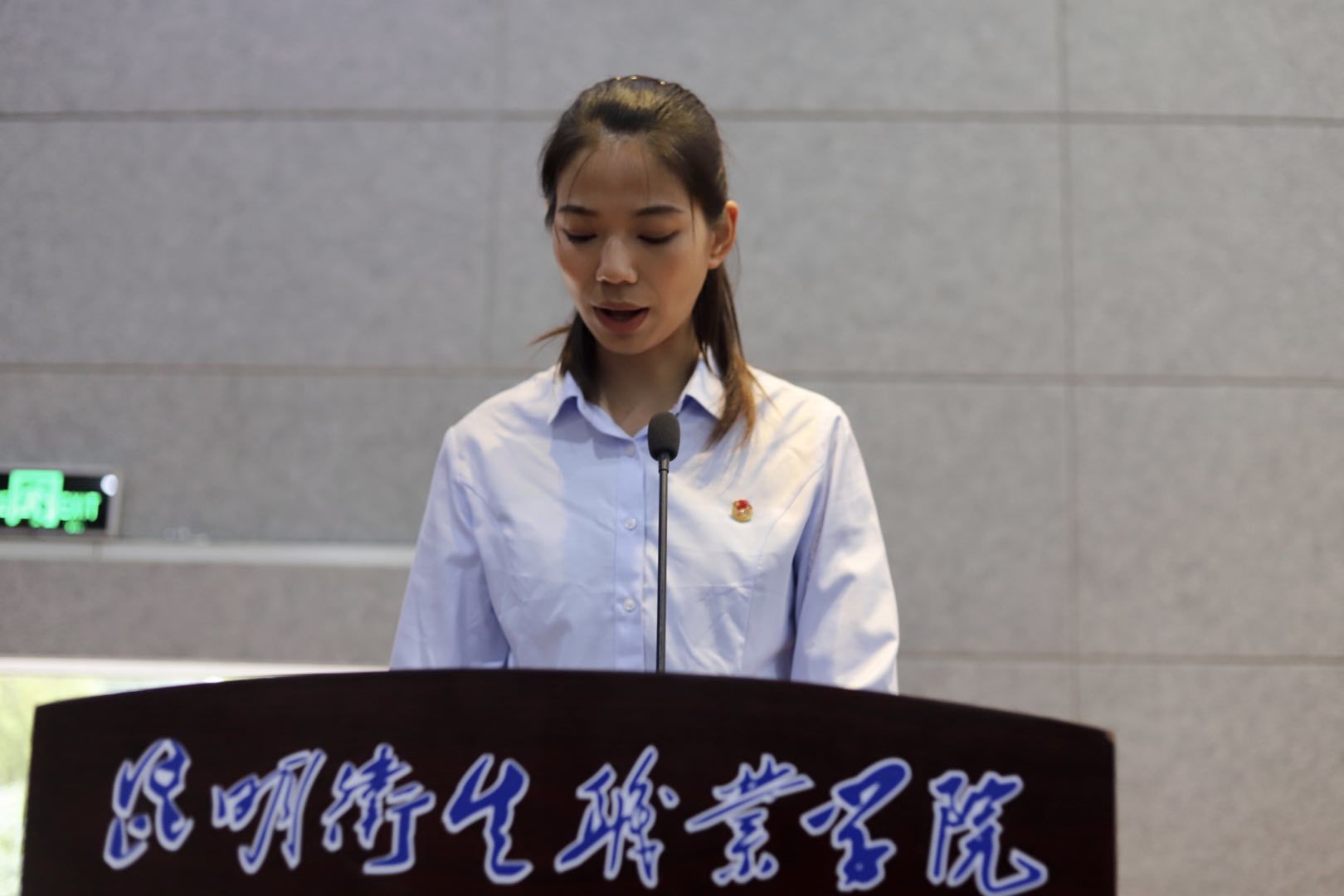 最后,团委书记雷红梅老师为本次大会总结发言,她对新干部表示衷心的祝贺,对上届的学生干部表示衷心的感谢。雷书记对新的学生干部提出了几点要求:1、学生干部不摆架子,服务学生、努力学习;2、及时了解自己管辖的工作;3、带领部门组织有意义的文体活动;4、时刻反省自己,以组织为主;5、加强与老师的沟通,把工作做更好。希望大家敢的追求自己的梦想。祝即将毕业的干部一切顺利,留下的干部撸起袖子干。