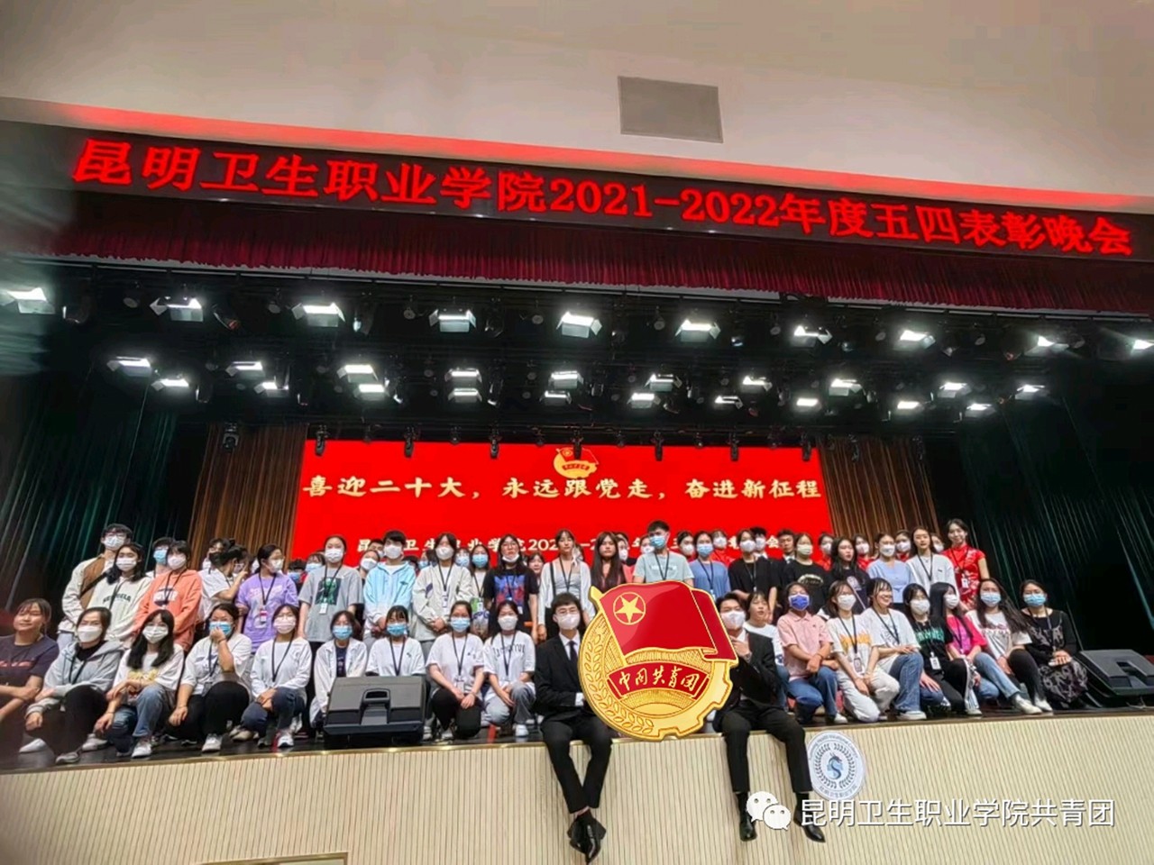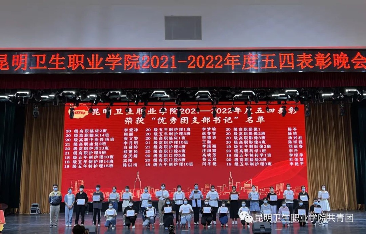 以青春之诗咏青春之志,传承红色基因,在五四青年节即将到来之际,为弘扬五四精神,传承优良传统,表彰学院先进集体与个人,并以此树立典型,发挥先进青年模范和优秀团员典型的榜样示范作用,进一步鼓舞和激励广大昆卫青年学子刻苦学习、积极进取。4月28日晚,学院团委于明德会堂举行“喜迎二十大 永远跟党走 奋进新征程”主题“五四”表彰晚会。学院党委副书记张晓刚同志,党委委员、组织部部长、副院长周平同志,各处室负责人、二级学院党支部班子成员、全体辅导员、团支部代表共同参加了本次晚会。