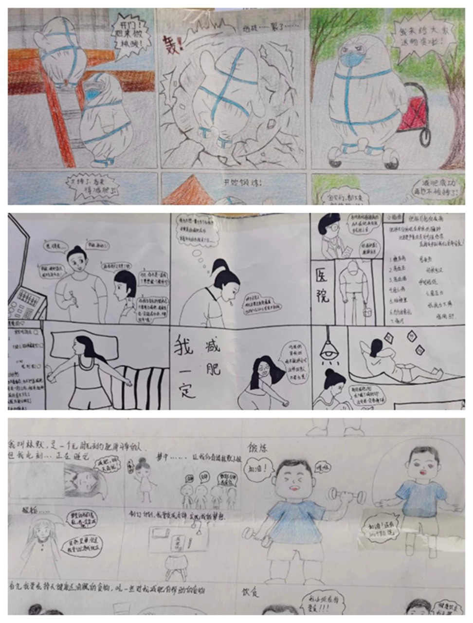 以连载漫画的形式绘画出关于世界肥胖日的相关作品,漫画中含有励志言语,报名者将绘画作品交到红会办公室,以绘画为主充分认识肥胖对人体的危害,了解各年龄阶段易发胖的知识及预防方法。合理采取合理的饮食营养方法,尽量做到定时定量生活规律养每餐不要太饱,合理安排和调整好自己的睡眠时间。