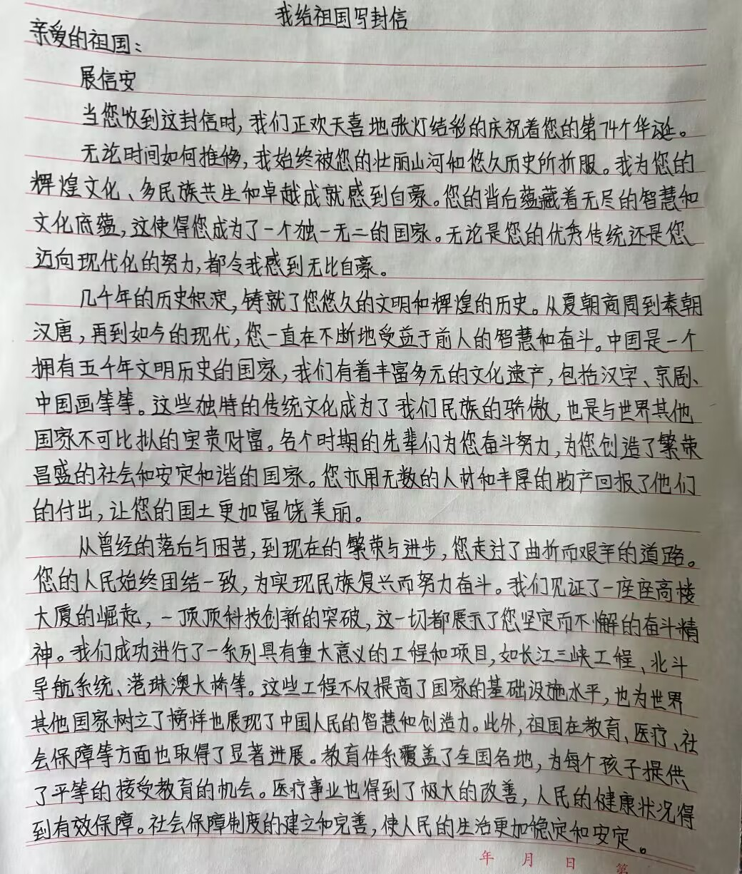 我给祖国写封信