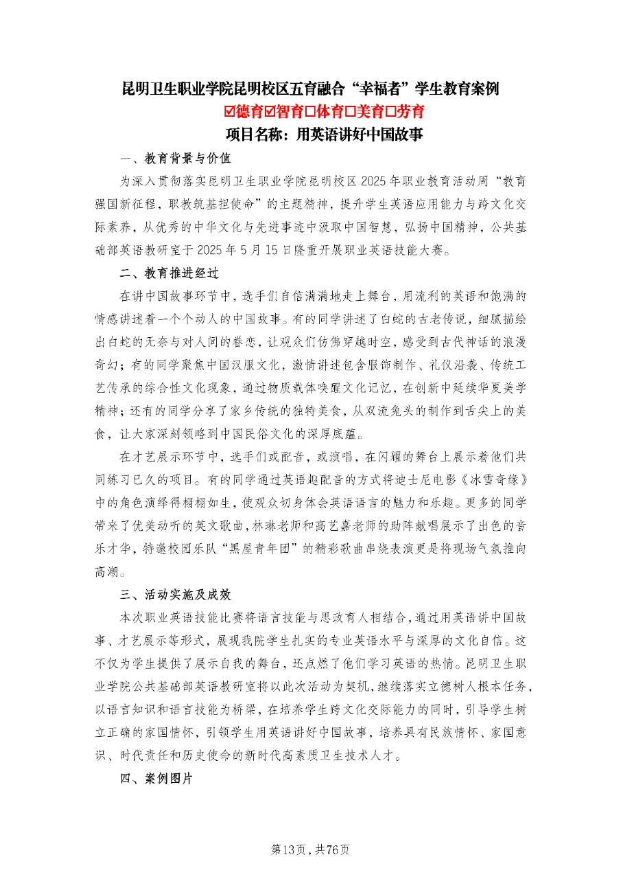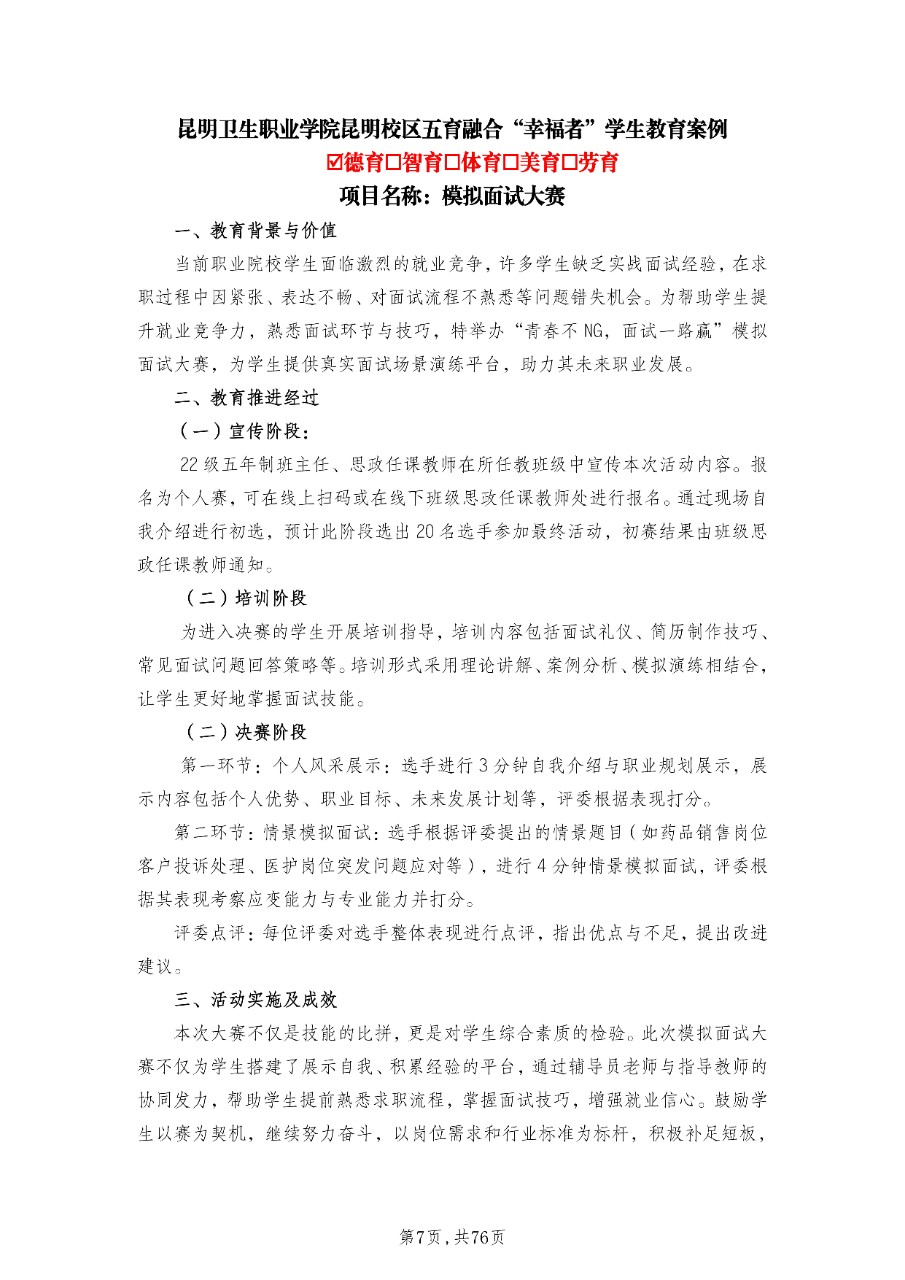 2025年职教活动周五育融合“幸福者”学生教育案例