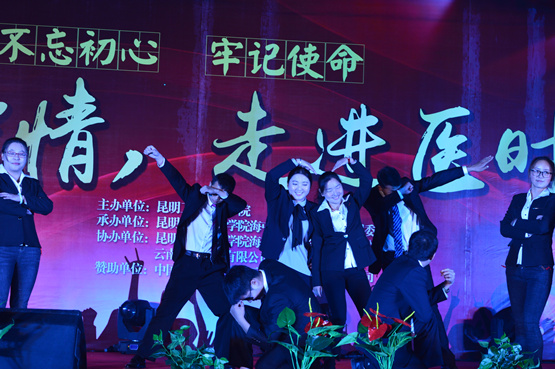 晚会在热情洋溢的舞蹈《征途》和《礼仪之邦》中拉开帷幕,活力的舞姿展现出属于昆卫学子独有的青春与热情。伴随着多彩的灯光、柔美的音乐,诗朗诵《梦想给我前进的力量》、合唱《我的祖国》、歌曲《中国人》表达了昆卫学子对祖国的热爱与对未来的美好憧憬。异域风情的印度舞《捉拉娜》、佤族舞《佤山印象》、《家人喜》,舞者们用曼妙的舞姿尽显古风魅力,展示了中华传统文化的独特魅力。丰富多彩的社团节目《跆拳道表演》、动感十足的街舞《热血青年》展现了多彩的校园生活,号召同学们走下网络、走出宿舍,走向操场,拥抱和珍惜校园时光。音乐社范大松团队的《童话镇》歌曲,伴随着现场演奏的形式,引起全场同学的共鸣。教师节目《舞蹈串烧》展现了教师们多才多艺别具风趣的一面,并赢得全场热烈掌声。有海源校区表演的舞蹈《Good Time》展现了昆卫学子清新活泼的青春风貌。最后由辅导十五班阿机嫫子作用彝语演唱《带我到山顶》结束了整台晚会。