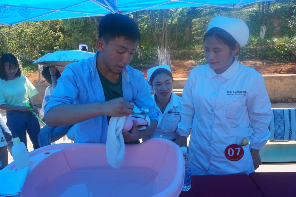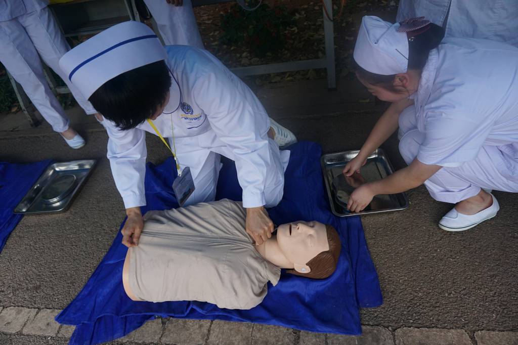 2019年5月15日早上八点三十分,职教周开幕式在海屯校区举行。开幕式结束后,徒手心肺复苏、护理礼仪和静脉输液相继进行展示。徒手心肺复苏和静脉输液在今年的云南省职业技能大赛中取得了二等奖的好成绩。心肺复苏术是针对心博骤停病人的一种行之有效的抢救技术,能使病人立即恢复自主呼吸和心跳,是医学生必须掌握的基本技能。静脉输液治疗是临床护士必须掌握的常规护理技术操作,虽看似简单,却有不少技巧。让我们来跟随现场图片一睹风采吧。