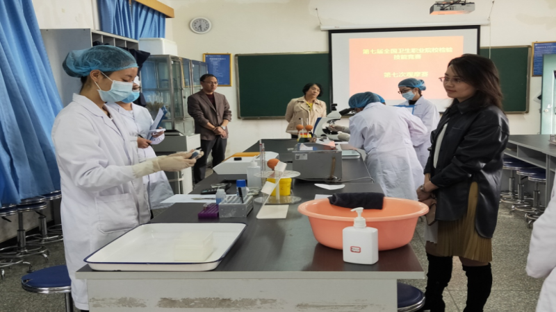 2020年10月17日,由全国职业教育教学指导委员会医学检验技术分委会、中国医院协会临床检验专业委员会主办,四川康复职业学院、人民卫生出版社和重庆华教科技有限公司承办的第七届全国职业院校"人卫杯"检验技能竞赛暨第二届"华教杯"形态学在线大赛在四川省自贡市四川康复职业学院拉开帷幕,来自全国各地中职组13支,高职组37支,本科组2支共52支代表队参赛,大赛设中职组、高职组和本科组。在为期三天的竞赛中,中职组选手们将以手工法操作形式,对细菌检验(革兰染色法及细菌鉴定思路)、白细胞计数及临床运用、总蛋白测定及临床运用进行抽签比赛,形态学检验在线竞赛作为必赛项目。