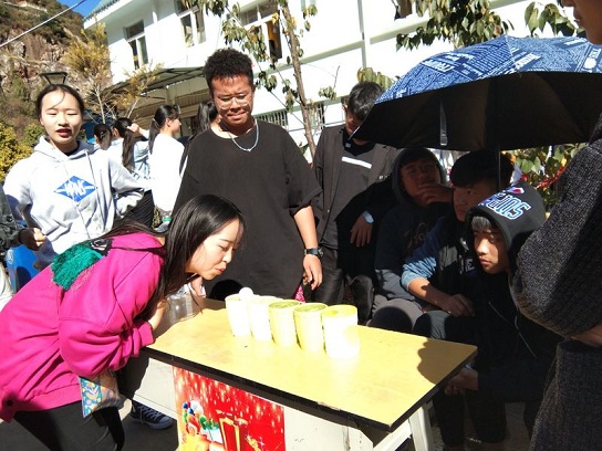 2018年11月20日下午的篮球场上回荡着欢声笑语,不少刚下课的同学驻足在这里,到底是什么吸引了他们,原来是“狂欢宴,喜游园”的主题游园会在这里举行,本次游园活动由校团委的11个社团负责,全校学子积极参与。妙趣横生的活动,让无数同学童心开始翻滚,一个接一个的精彩小游戏带我们回味可爱难忘的童年时光。