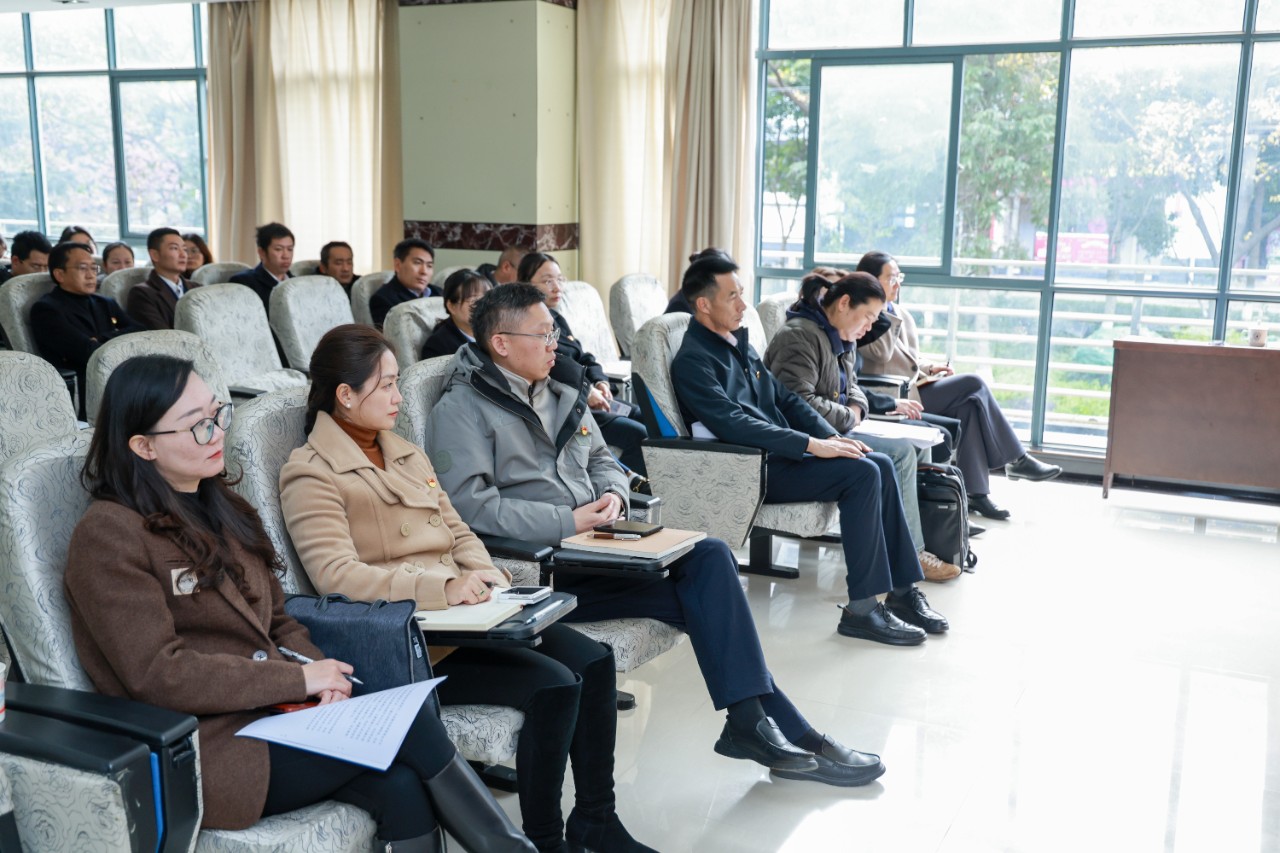 1月3日上午,省委教育工委考核组到XK星空开展2024年度民办高校党建积分制、意识形态工作考核,并召开2024年度领导干部考核工作会议。考核组组长、云南经济管理学院原党委书记(督导专员)平锦,考核组副组长、云南财经大学统计与数学学院党委书记杨媛妮,学院副理事长朱秀珍、学院党政领导班子、各部处室负责人及教师代表参加会议。会议由学院党委副书记、院长龙雨霏主持。