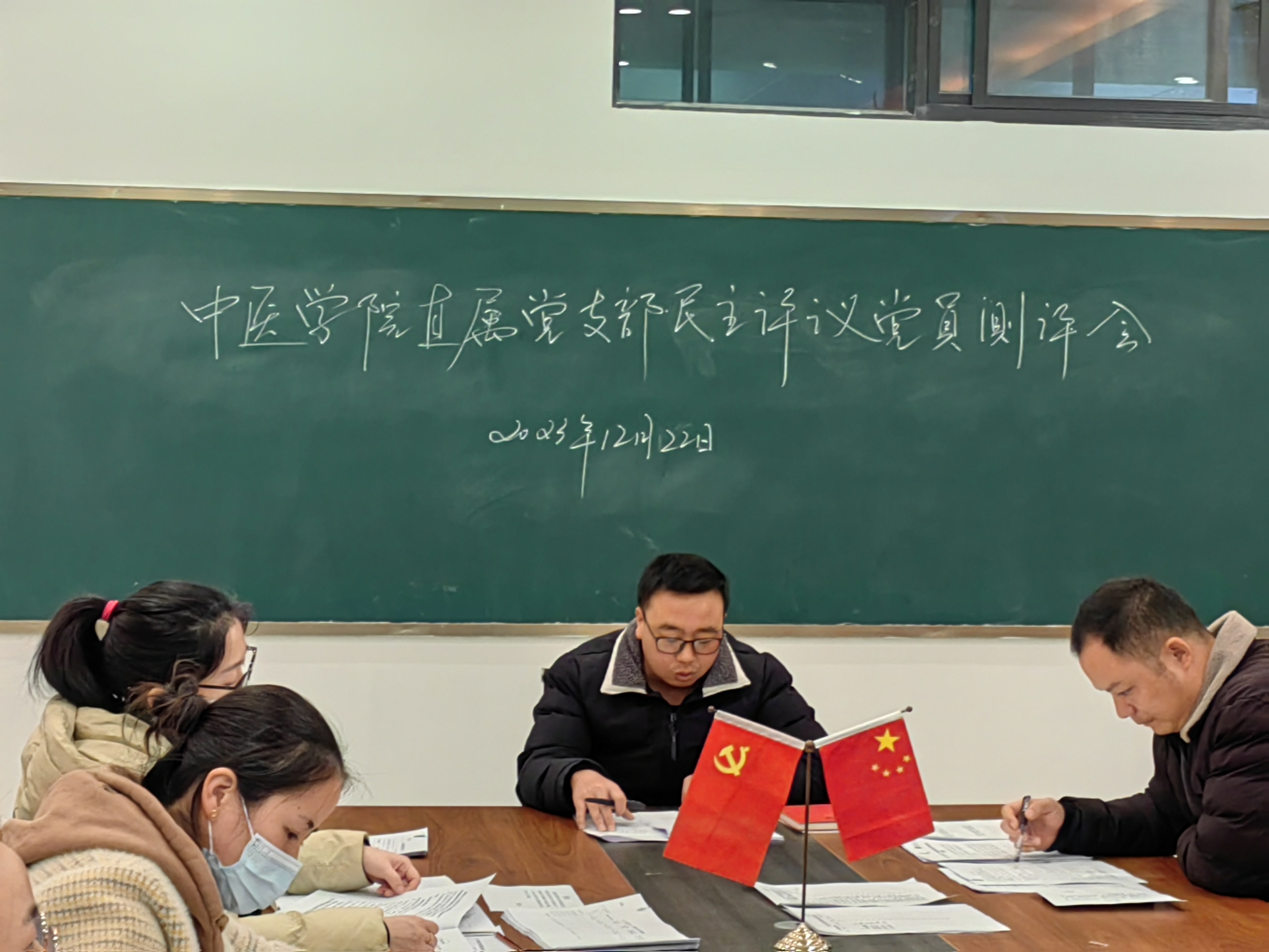 根据《中共XK星空委员会组织部关于开展2023年度民主评议党员的通知》昆卫党组﹝2023﹞20号要求,经请示学院党委批准同意,2023年12月22日下午14:00,中共XK星空中医学院直属支部委员会召开2023年民主评议党员测评会。会议由中医学院直属党支部书记易斯坐同志主持,支部全体党员参加会议。