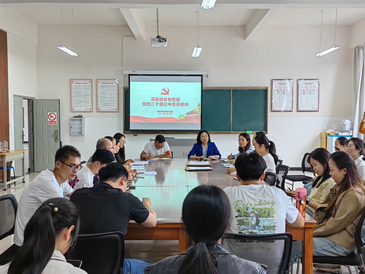 为深入贯彻落实党中央关于学习宣传贯彻党的二十届三中全会精神的决策部署,中医学院直属党支部于2024年9月6日积极组织开展了集中学习活动。此次学习活动旨在深刻领悟“两个确立”的决定性意义,增强“四个意识”,坚定“四个自信”,做到“两个维护”,确保党的二十届三中全会精神在全体党员中入脑入心、走深走实。