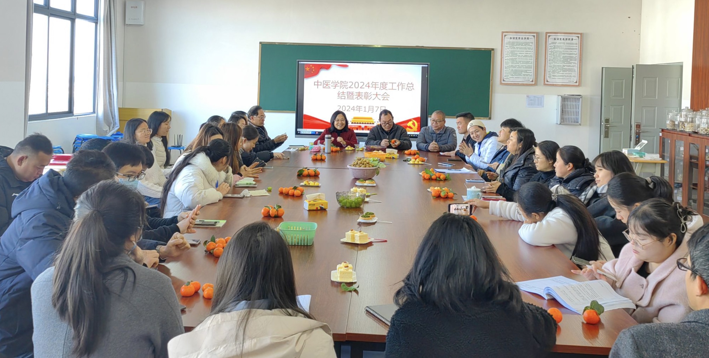 为充分发挥先进典型的示范引领作用,激发广大教师的积极性和创造性,中医学院于2025年1月7日举办了“时光荏苒岁末至, 扬帆起航待新篇”年终总结活动。本次活动旨在激励全体教职工在新的一年里,以更加饱满的热情和更加务实的作风,推动学院教育事业的发展。活动由中医学院院长王志红教授主持,中医学院全体教师参与。