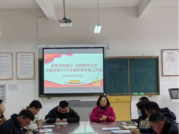 为强化师德师风建设,规范教师职业行为,2025年11月21日,中医学院于204室开展2025年度师德考核评价工作,会议由学院直属党支部书记易斯坐主持,全体教师参与。