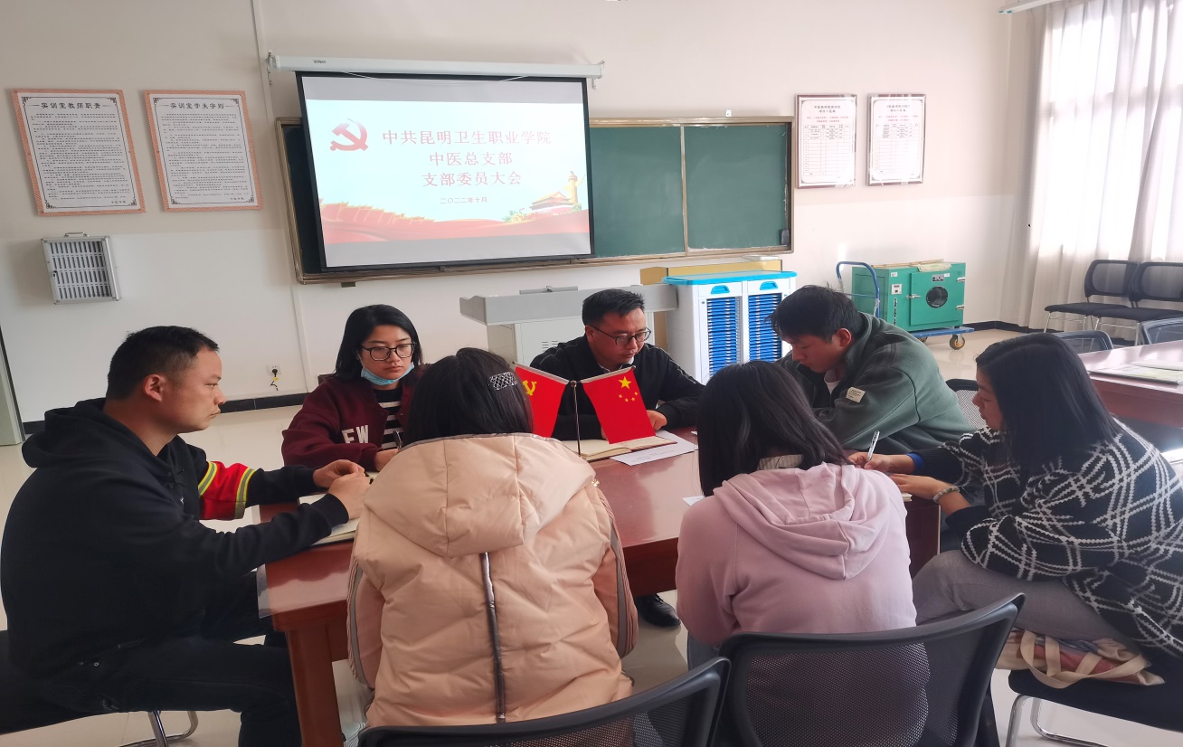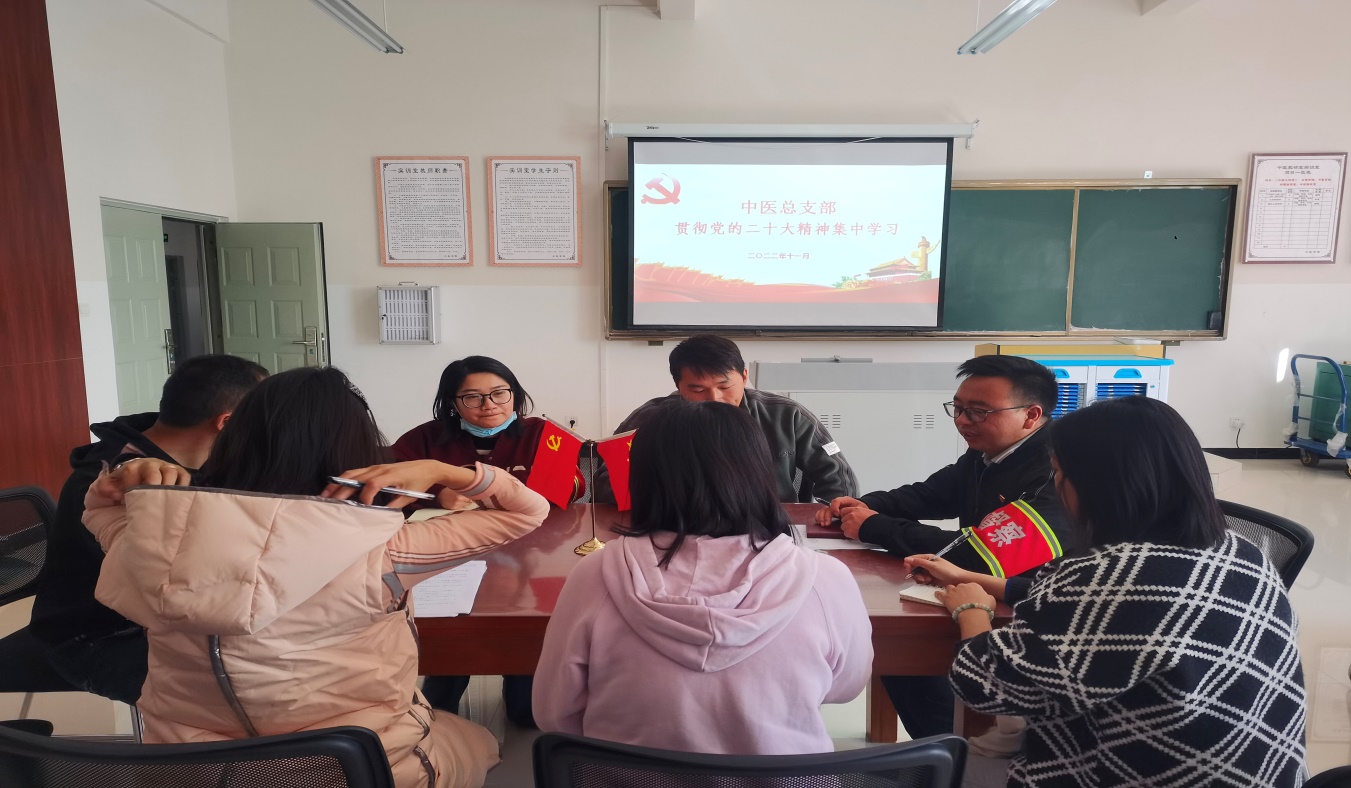 为深入学习宣传贯彻党的二十大精神,切实把广大党员干部和全体师生员工的思想统一到上级的决策部署上来,以推进学院高质量发展的实际行动把党的二十大精神落到实处,根据工作安排,中医总支部于2022年11月18日组织召开支委扩大会议,分享学习党的二十大精神感悟,会议由总支部书记易斯坐同志主持。会上,各支委委员结合自身工作实际,说感悟、谈体会。