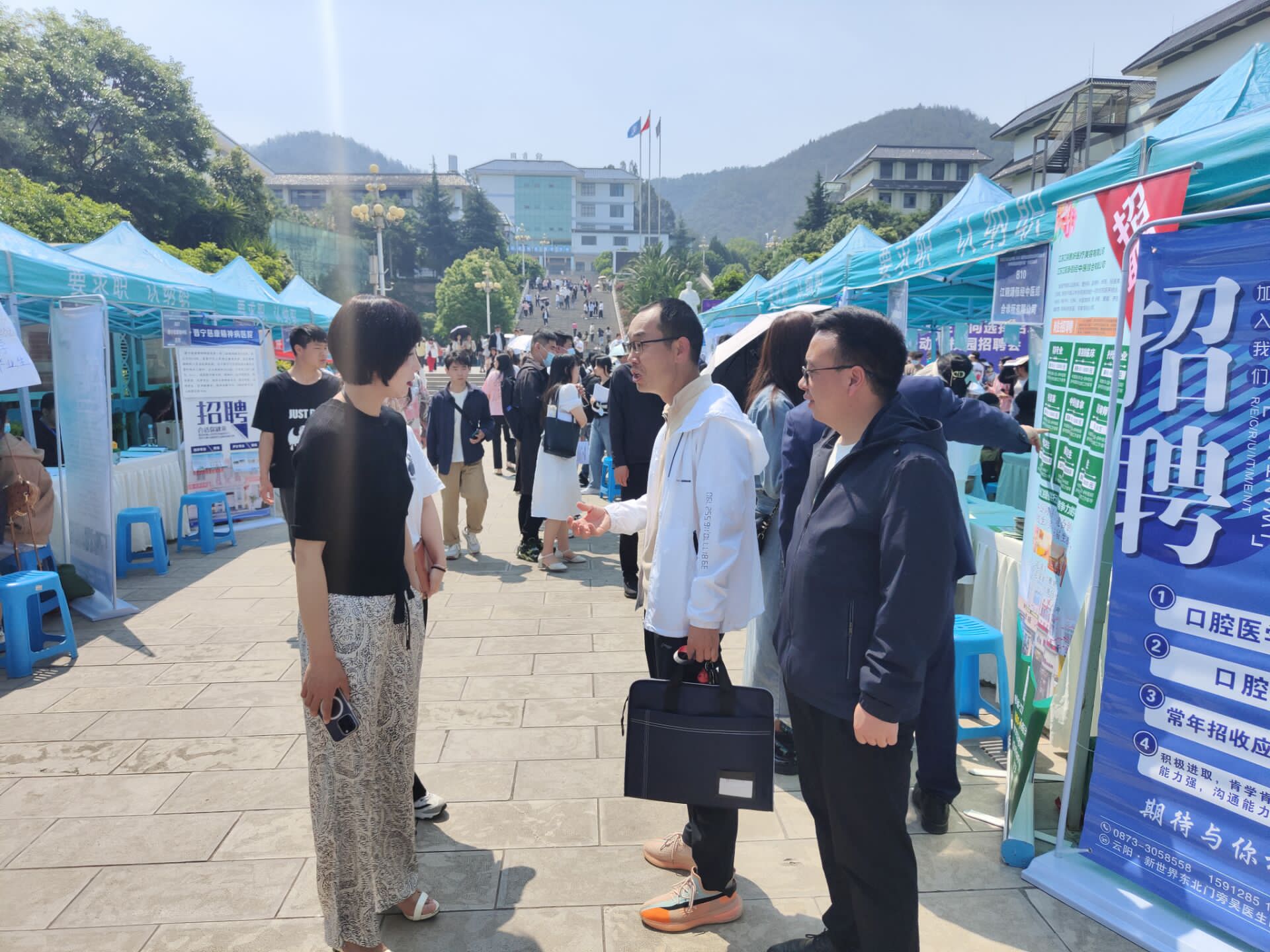 学院领导对本次招聘会给予了高度重视,中医党总支书记易斯坐,中医党支部副书记余建坤,中医学院副院长黄承伟、魏泽正在招聘会现场,与2023年应届毕业生亲切话谈,询问面试情况,并向各招聘单位详细了解应聘要求及工作内容。