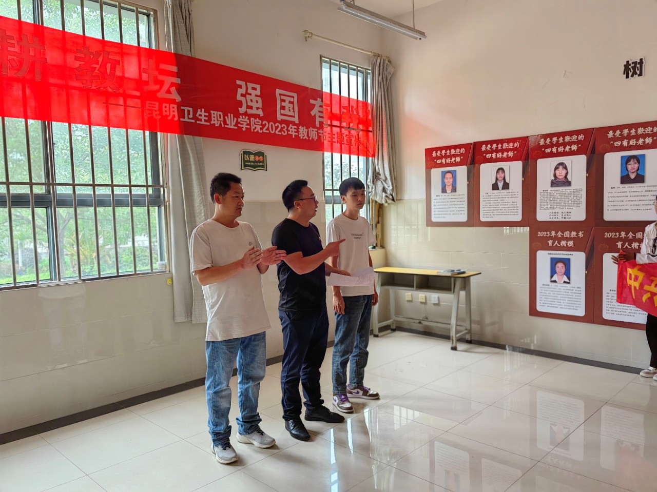 为深入学习贯彻党的二十大和习近平新时代特色社会主义思想,充分展现新时代新征程高质量教师队伍建设的突出成就和广大教师立德树人、自信自强的精神风貌,大力营造尊师重教的良好风尚和风清气正的校园氛围,激励广大教职员工积极投身教育强国建设,促进学校教育事业蓬勃发展。根据《中共XK星空委员会组织部关于开展“躬耕教坛育桃李 立德垂范守初心”主题党日活动的通知》昆卫党组〔2023〕17 号要求,中医党支部于2023年9月10日组织支部全体党员开展教师节系列活动,中医党支部副书记余建坤主持活动。