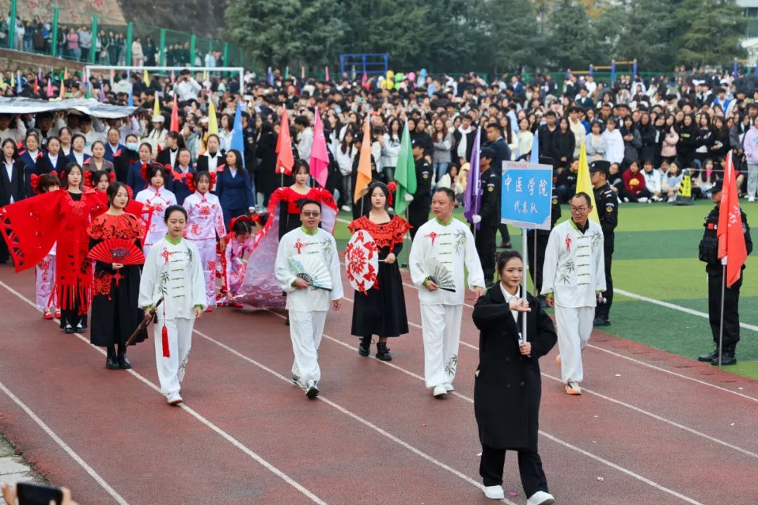开幕式上,他们朝气蓬勃,步伐有力,目光如炬,他们服装统一,红色代表了他们坚定的信念;他们动作整齐,手中挥舞的彩带代表了他们五彩的梦想;他们意气风发,稳操胜券,展现出中医学院乐观向上的精神风貌,为接下来的运动比赛注入了信心。