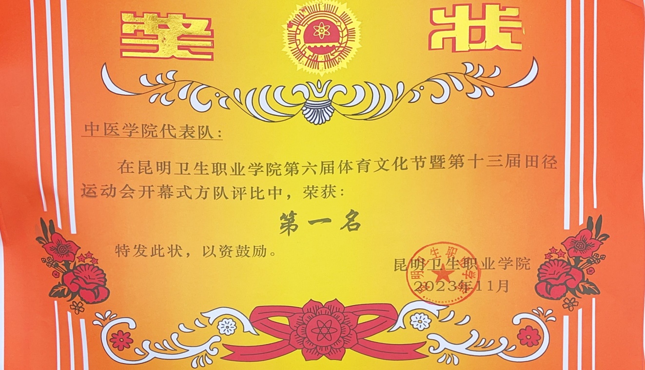 在本次运动会中,中医学院师生积极组织报名、参赛,取得了可喜的成绩。运动健儿们奋发拼搏,所向披靡,在昆卫的绿茵场上留下了一道道靓丽的风景线。最终,在全体师生齐心协力的努力之下,中医学院代表队在开幕式方队评 比中荣获“第一名”,学生甲组、乙组团体总分在田径项目比赛中分别获得“第二名”的好成绩。中医学院全体师生的精神在运动场上得到了广泛的发扬、风采得到了充分的展示。