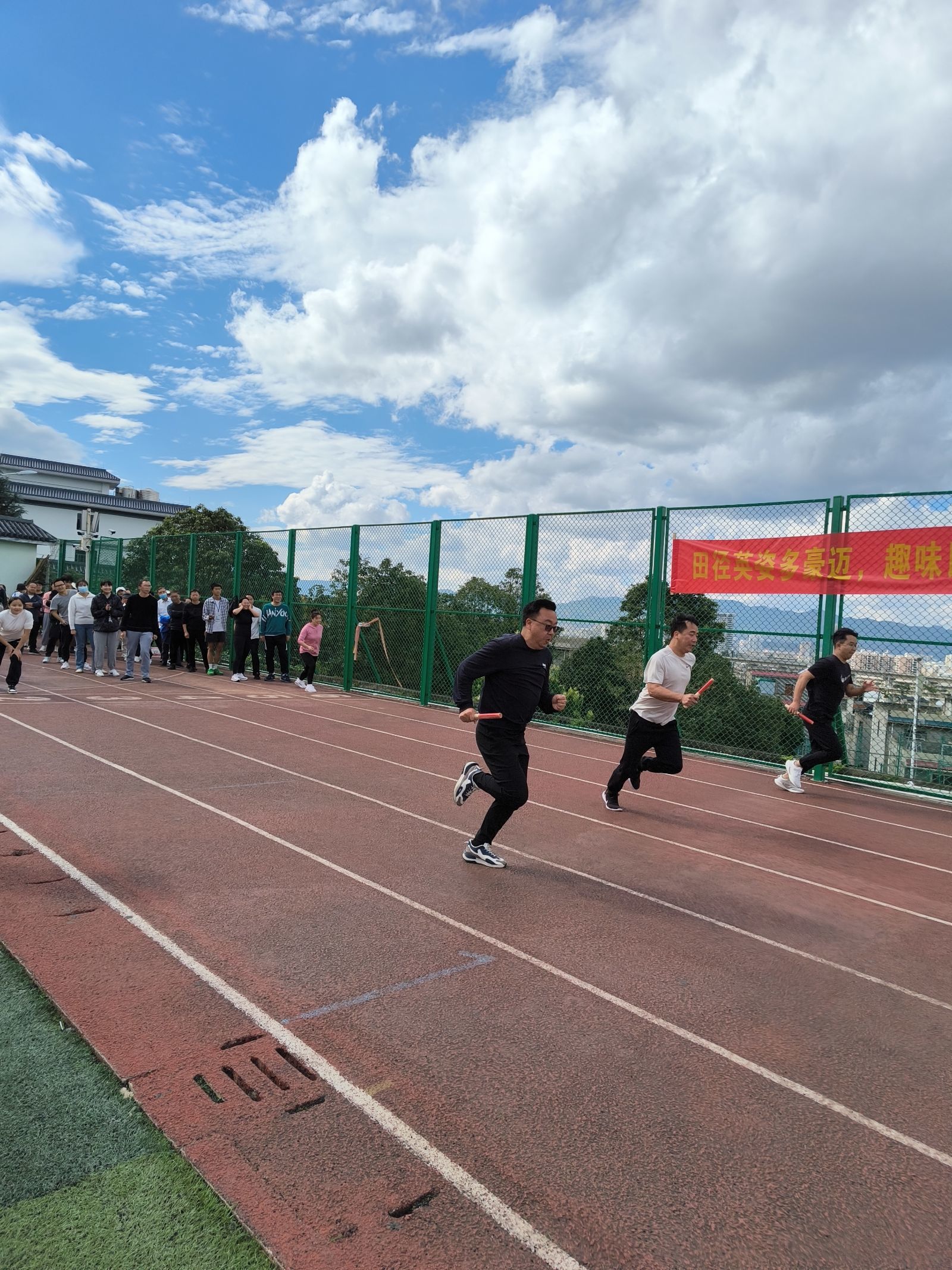 运动会不仅是学生的主场,也是老师的赛场,他们积极参与其中,肆意挥洒汗水,仿佛还是那个意气风发的少年。