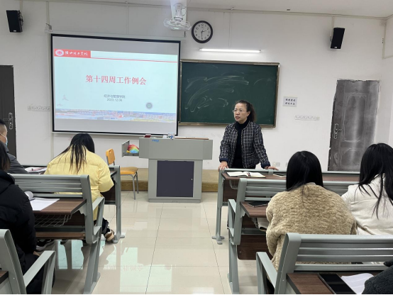 2023年12月06日,经济管理学院在一教219召开第十四周教学工作会议会议由吴玲院长主持,今年会jinnianhuicom全体教师参加。