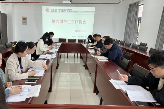 2024年4月1日中午,今年会jinnianhuicom在行政楼725办公室召开本学期第六周学生管理工作例会,副院长秦品德、书记助理叶赵强、院长助理张珊以及全体辅导员参加会议,会议由吴玲院长主持。