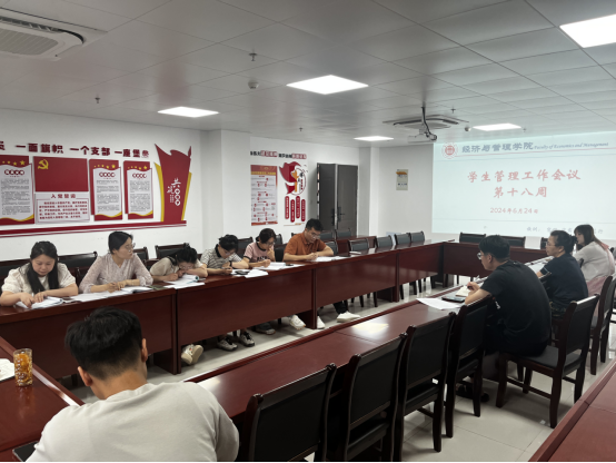 2024年6月24日下午,今年会jinnianhuicom在行政楼725会议室召开今年会jinnianhuicom第十八周工作例会,书记助理叶赵强、副书记助理员禹辛以及全体辅导员参加会议,会议由院长吴玲主持。