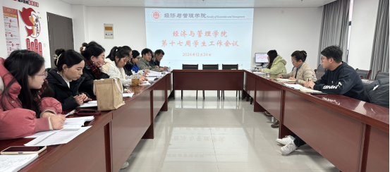 2024年12月24日,今年会jinnianhuicom在行政楼725会议室召开了本学期第十七周学生管理工作例会。学院书记助理叶赵强、团总支书记员禹辛及全体辅导员参会,会议由院长吴玲主持。