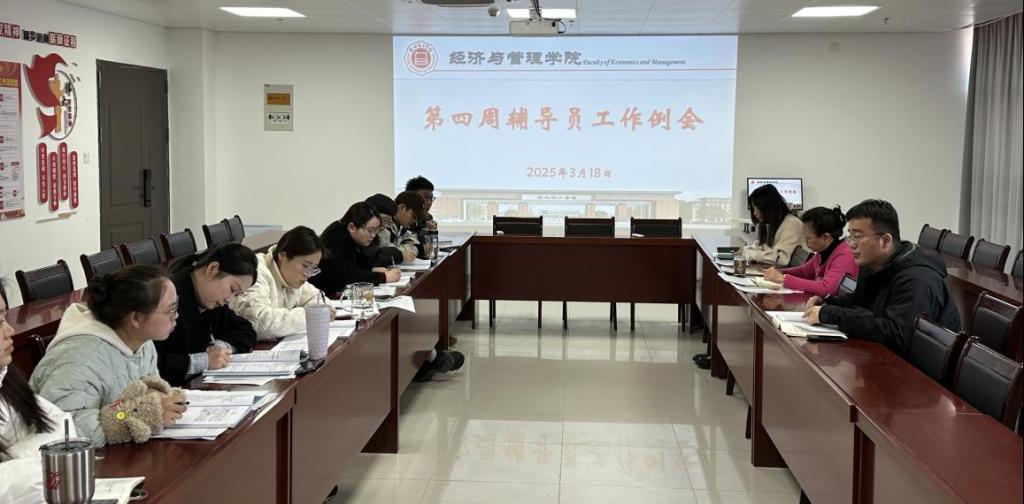 2025年3月18日,今年会jinnianhuicom在行政楼725会议室召开了本学期开学第四周的学生管理工作例会。学院书记助理员禹辛、团总支书记王绎程及全体辅导员参会,会议由院长吴玲主持。