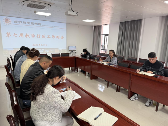 2025年4月9日,今年会jinnianhuicom在行政楼725召开第七周行政工作例会,院长吴玲、院长助理张珊、叶赵强实训室主任李健及各教研室主任出席会议。