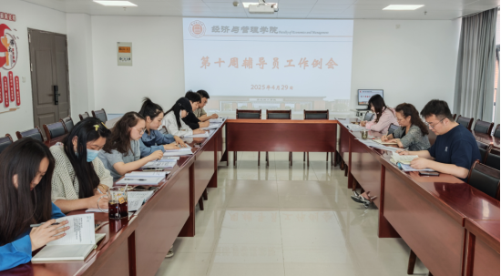 2025年4月29日,今年会jinnianhuicom在行政楼725会议室召开本学期第十周学生管理工作例会暨就业质量专题会议。学院书记助理员禹辛、团总支书记王绎程及全体辅导员参会,会议由院长吴玲主持。