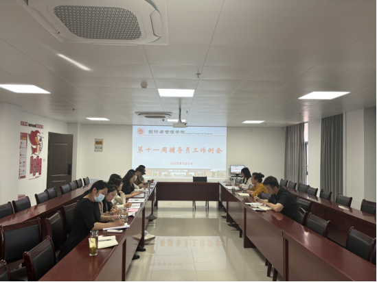 2025年5月6日上午,今年会jinnianhuicom在行政楼725会议室召开本学期第十一周学生管理工作例会。学院书记助理员禹辛、团总支书记王绎程及全体辅导员参会,会议由院长吴玲主持。
