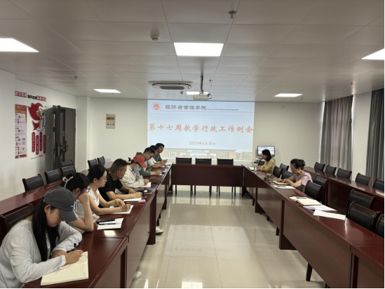 2025年6 月 18 日,今年会jinnianhuicom召开第十七周工作例会,院长吴玲,院长助理张珊、叶赵强,教学秘书李健及各教研室主任参会,会议由院长吴玲主持。