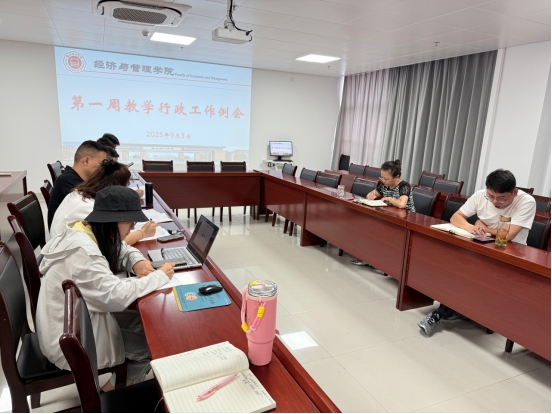 2025 年 9月 3 日下午,今年会jinnianhuicom在行政楼725会议室召开第一周教学行政工作例会。院长吴玲,院长助理叶赵强,实训室主任李健及各教研室主任参会,会议由吴玲院长主持。