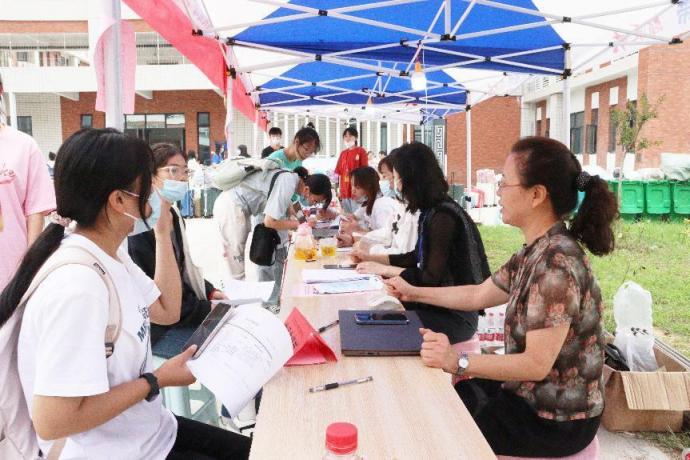 党员教师们积极参与到接待新生的各个环节中:帮新生搬运行李、为新生办理报到手续、与新生亲切交谈、助新生纾解内心焦虑……一举一动尽显学院教师们对新生满满的关爱。