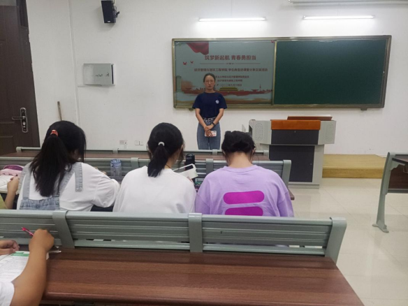 多次参加学校各项比赛的王俊艳同学与新生们分享了她参加比赛活动和专业课学习的经验,也强调了大学生活中学习和兴趣爱好之间平衡的重要性,希望同学们都能不忘初心,砥砺前行,积极参与各项活动,丰富自己的大学生活,在成为光的路上不断努力,取得理想的成绩!