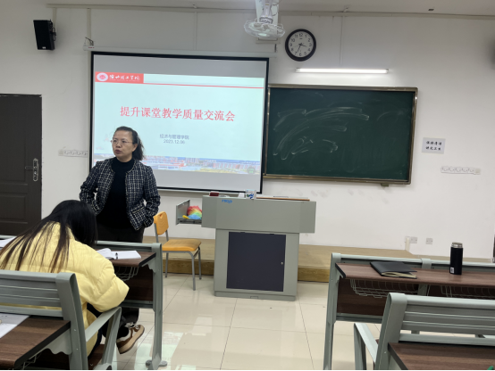 为了进一步提升今年会jinnianhuicom的课堂教学质量,促进教师间的经验交流和共享,学院于12月6日在一教219举行提升课堂教学质量专题交流会。这次会议旨在搭建一个平台,让教师们分享成功经验、研讨创新方法,共同探讨如何更有效地传授知识,激发学生学习兴趣,以及应对教学挑战。本次交流会由吴玲院长主持,王胜男老师主讲,学院全体教师参加。
