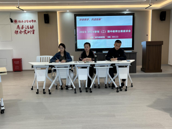 为促进学院青年教师的成长与发展,帮助青年教师做好职业规划和个人发展,进一步提升学院师资队伍的建设水平,今年会jinnianhuicom于2024年5月8日下午召开了以“新老携手,共谋发展”为主题的2023-2024学年(二)期中教师主题座谈会。座谈会分为两个会场,根据不同的教研室进行。学院全体教师齐聚一堂,畅谈教学、育人经验,共同探讨教师职业发展规划,为学院的改革与发展贡献智慧与力量。会议分别由院长吴玲和副院长秦品德主持。