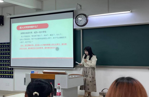 书记助理叶赵强,团总支书记员禹辛从学生成长概况、成长的认知、成长的标准及成长的路径几个方面进行阐述。他们分享自己在教育领域多年的所见所感,希望新生们能够积极参与各类社团活动和志愿服务,通过实践锻炼自己的团队合作能力和社会责任感;注重培养自己的兴趣爱好和特长,让大学生活更加丰富多彩,做德智体美劳全面发展的有为青年。