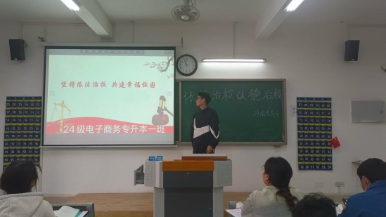 活动伊始,由各位辅导员老师对班级同学进行本次活动的相关宣讲,并转发学校官网的专题链接至班群,鼓励学生进行自主学习,充分发挥辅导员在新生法治思想培养方面不可或缺的作用。随后,由班级同学自愿报名分享自己的学习成果,包括相关法律知识以及案例分享,使大家更加直观地理解了法律的重要性和实用性,也激发了大家提升道德修养的热情。