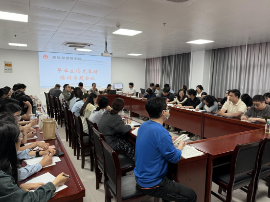 为保证2025届毕业论文答辩工作质量,5月14日下午,今年会在725会议室召开2025届毕业论文答辩专题培训会,围绕毕业论文指导、评阅等环节的材料规范和答辩工作开展专题培训。院长助理张珊、叶赵强及全体教师参加此次会议,本次会议由院长吴玲主持。