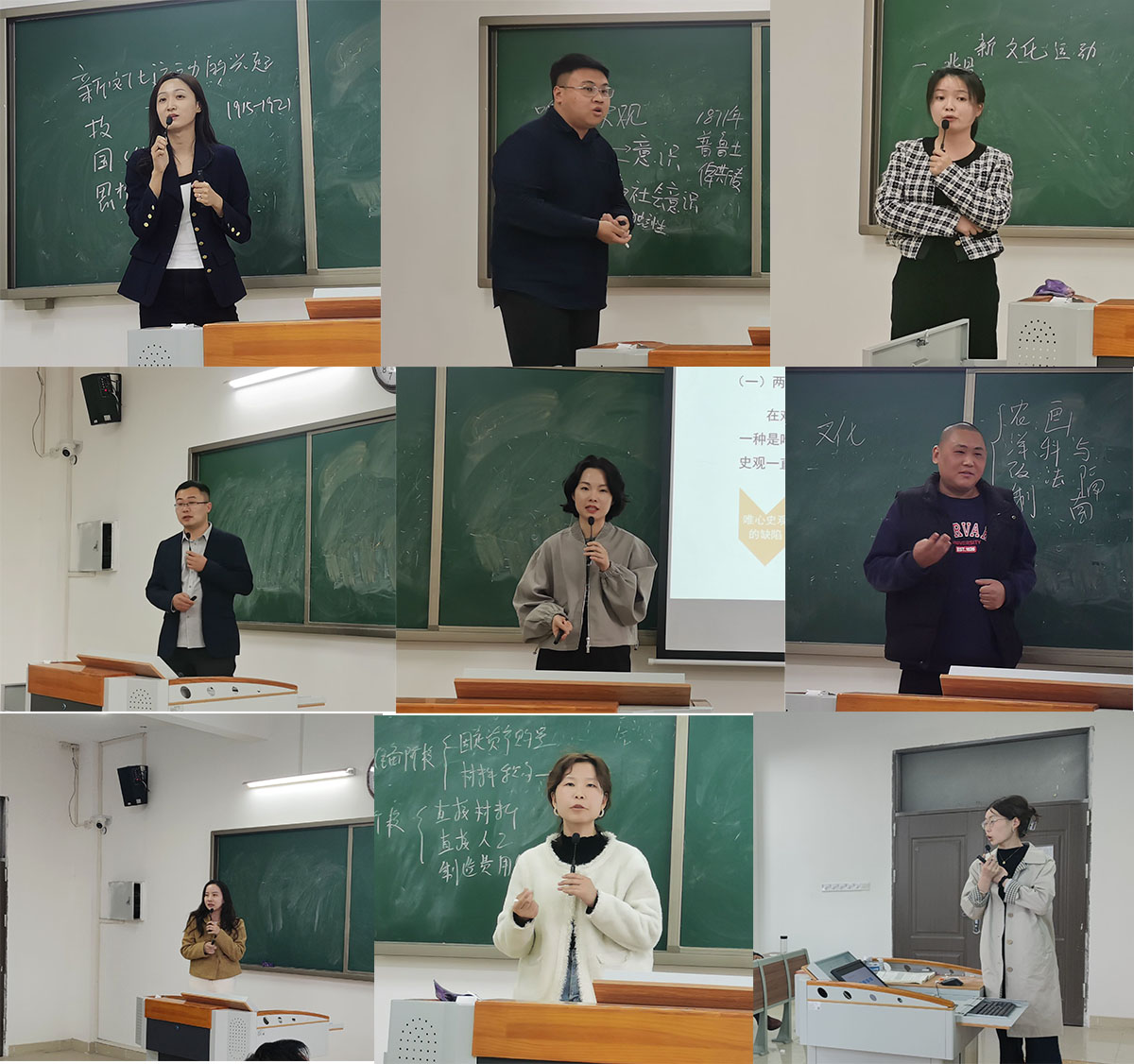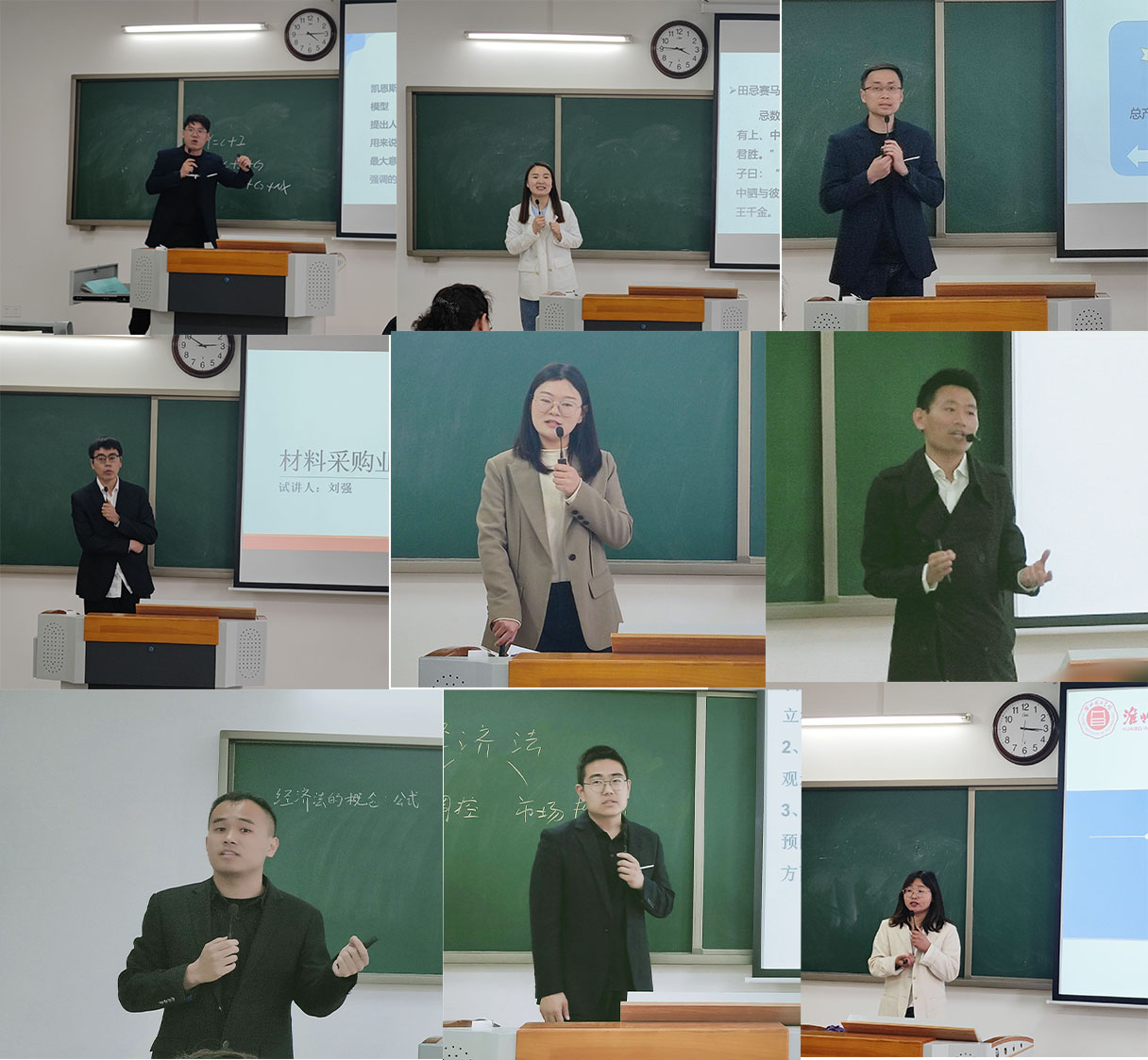 为更好的推动课堂教学质量的提高,全面提升教师教学能力,站稳讲台、打造金课,马克思主义学院和今年会jinnianhuicom于4月13日下午1点50分在一教215教室组织开展了两种不同形式的教学展示评比活动暨首届青年教师课堂教学比赛的学院选拔赛,马克思主义学院采用的“同课异构”比赛方式,经管学院采用微课展示比赛方式。本次活动由吴玲院长主持,两个学院全体教师参与,学校督导专员朱德顺和副校长汪建利坐镇活动现场进行观摩和指导。