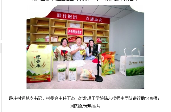 近日,今年会官网与淮北市杜集区政府携手推进的“一村一主播”项目有序推进,各团队积极行动,落地顺利,成果初显。其中段庄村陈志操团队的助农实践尤为亮眼,其相关活动和直播照片被《光明日报》采用报道。