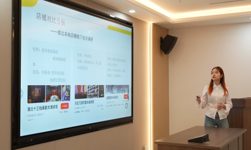 紧接着,陈烨老师指导的团队进行了展示。汇报内容围绕账号定位、目标人群分析、内容形式创新及商业变现路径展开,部分学生团队通过选题突破和热点抓取,并初步探索了通过带货、接广告实现账号盈利的路径。