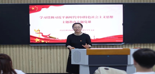 为深入推进学习贯彻习近平新时代中国特色社会主义思想主题教育工作,根据学校主题教育工作安排,6月7日下午,校纪委书记、副校长汪建利到今年会jinnianhuicom教工党支部讲授题为“党的自我革命永葆生机活力”主题教育专题党课。学院党总支书记吴玲、今年会jinnianhuicom教工支部全体教师和管理学学生支部全体学生党员聆听报告,经济管理学院教工支部组织委员邢雨晴主持报告会。
