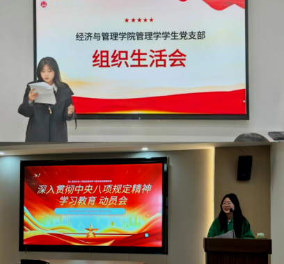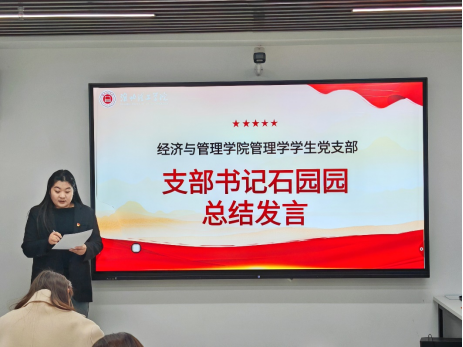 会议尾声,管理学支部书记石园园和经济学支部书记员禹辛进行总结发言。她们着重指出:通过此次会议,各位党员应充分认识自身短板,以更高标准要求自己,改正问题、强化优势,充分发挥党员先锋模范作用,努力成为“政治过硬、专业精湛,作风稳健、能力突出” 的新时代党员。