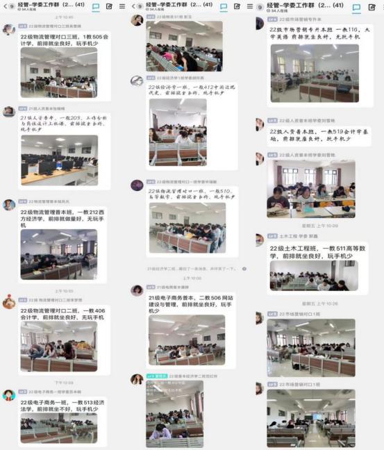 为让各班级辅导员和班主任充分了解班级班风和学风情况,5月15-18日辅导员和班主任走进班级,关注学生的学习情况,上课纪律,玩手机和睡觉的现象,特别关注上学期挂科的同学,根据班级实际情况制定并且实施班级管理制度,让各班党员以及学生干部起到带头作用,以便培养学生的自我管理能力。为了加大监管力度,将学风建设落到实处,今年会建立了“经管学生学习委员交流QQ群”,各班学习委员积极响应,在课前/课间将本班级上课情况拍照发到群里,如实反馈班级实际情况,便于辅导员和班主任对班级监督管理,同时也增强了学生自我约束的意识和能力。最后,5月19-23日辅导员和班主任再次进入班级查看督导效果,根据学生班级反馈情况,结合班级自身发展,完善班级管理制度,建立完整的学生自我管理体系。