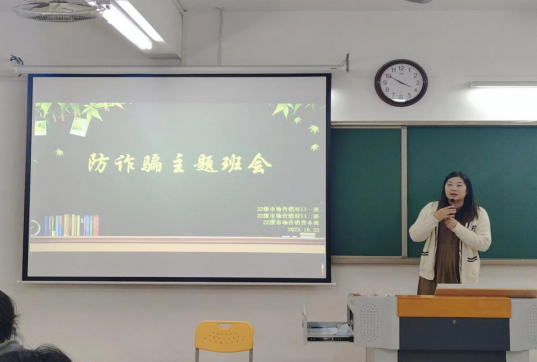为加强大学生防范电信网络诈骗安全教育,进一步提升高校学生防范诈骗的意识和能力,经济管理与建筑工程学院各班于2023年10月23日晚在各班固定教室召开主题班会,学院56个班级参与。